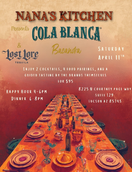 Join Nana’s Kitchen, a family owned Mexican eatery and two artisanal agave spirits brands - Cola Blanca Bacanora and Lost Lore. A traditional and authentic dinner to help celebrate the Agave Heritage Festival. Hecho en Mexico!